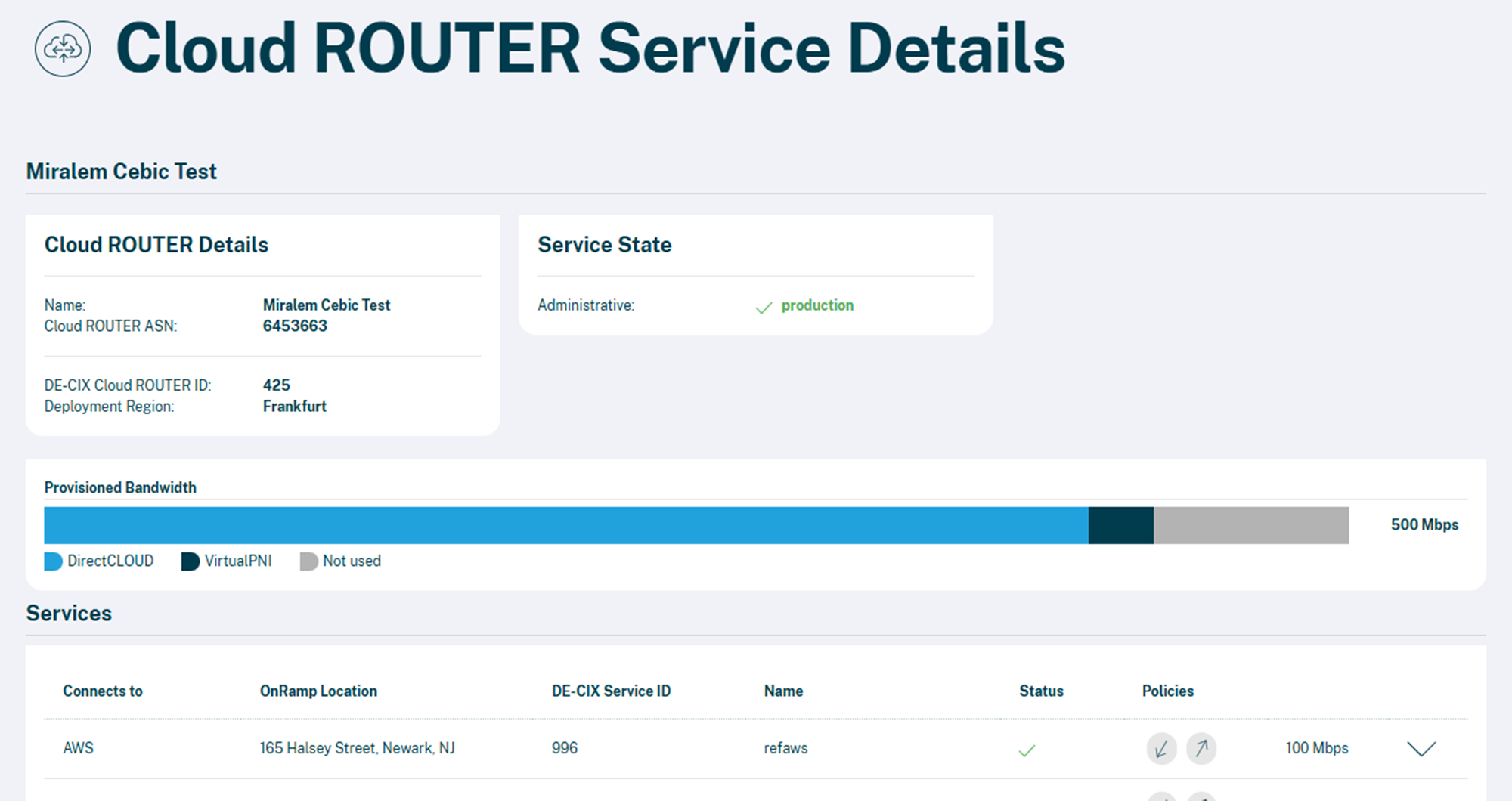 To apply relevant accept and reject policies go back to Cloud ROUTER Service Details.