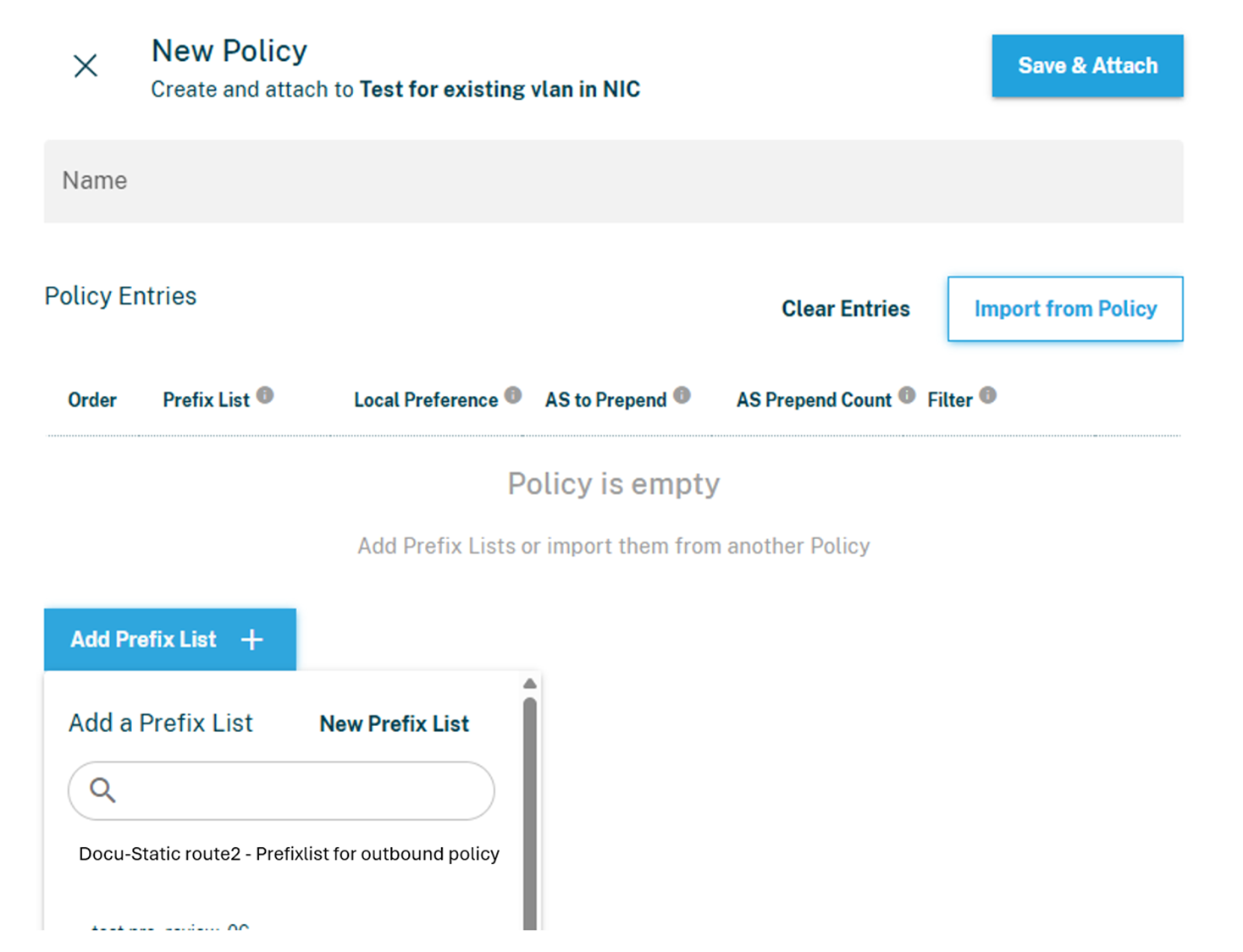 Automatic Prefix List: Automatically creates a prefix list for the aggregated prefix to simplify policy configuration.